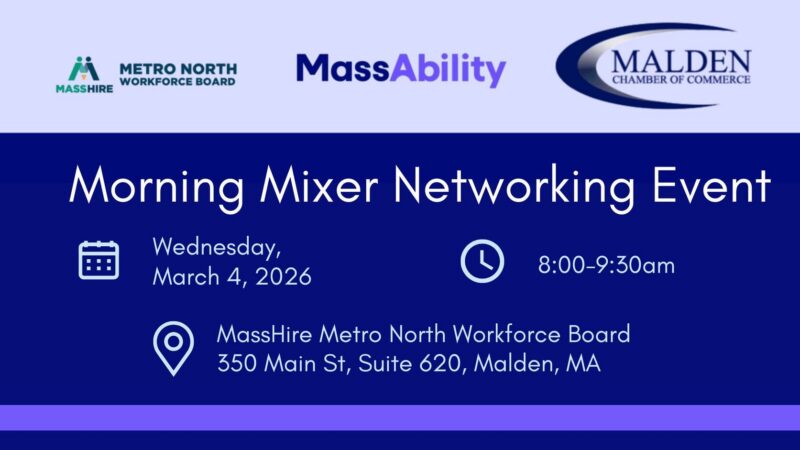 Wednesday, March 4th, 2026, 8:00-9:30am, at MassHire Metro North Workforce Board in Malden. Click for details!